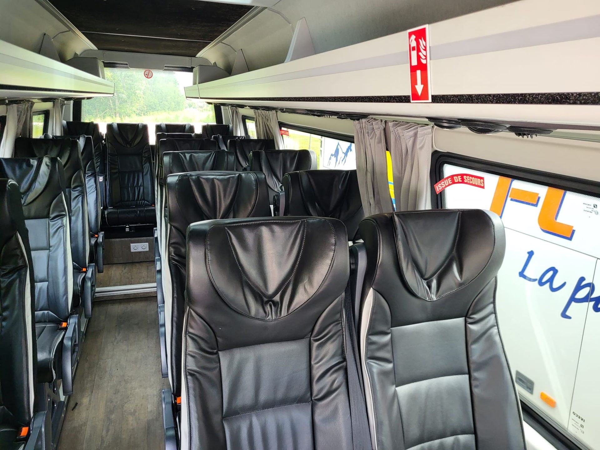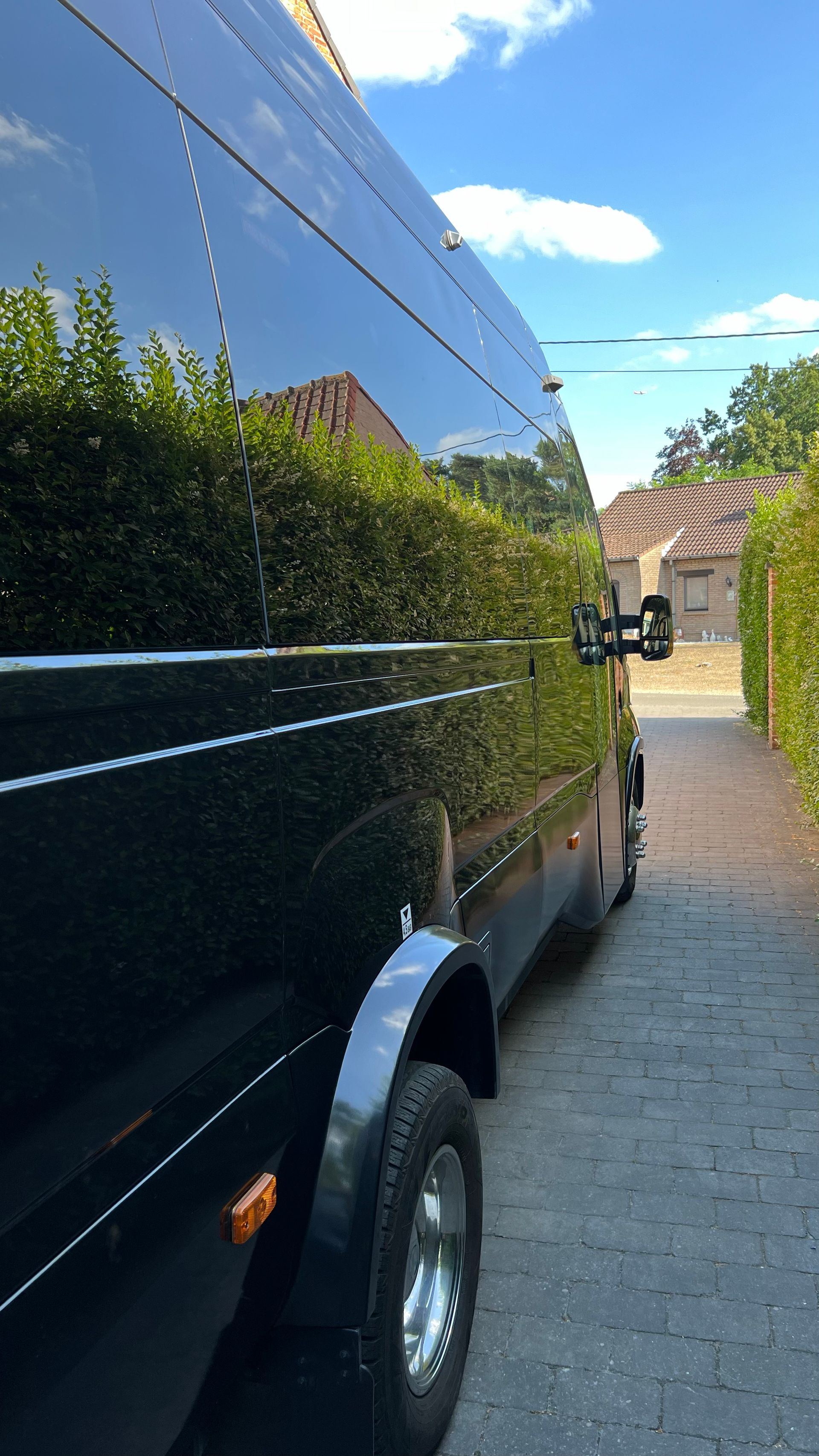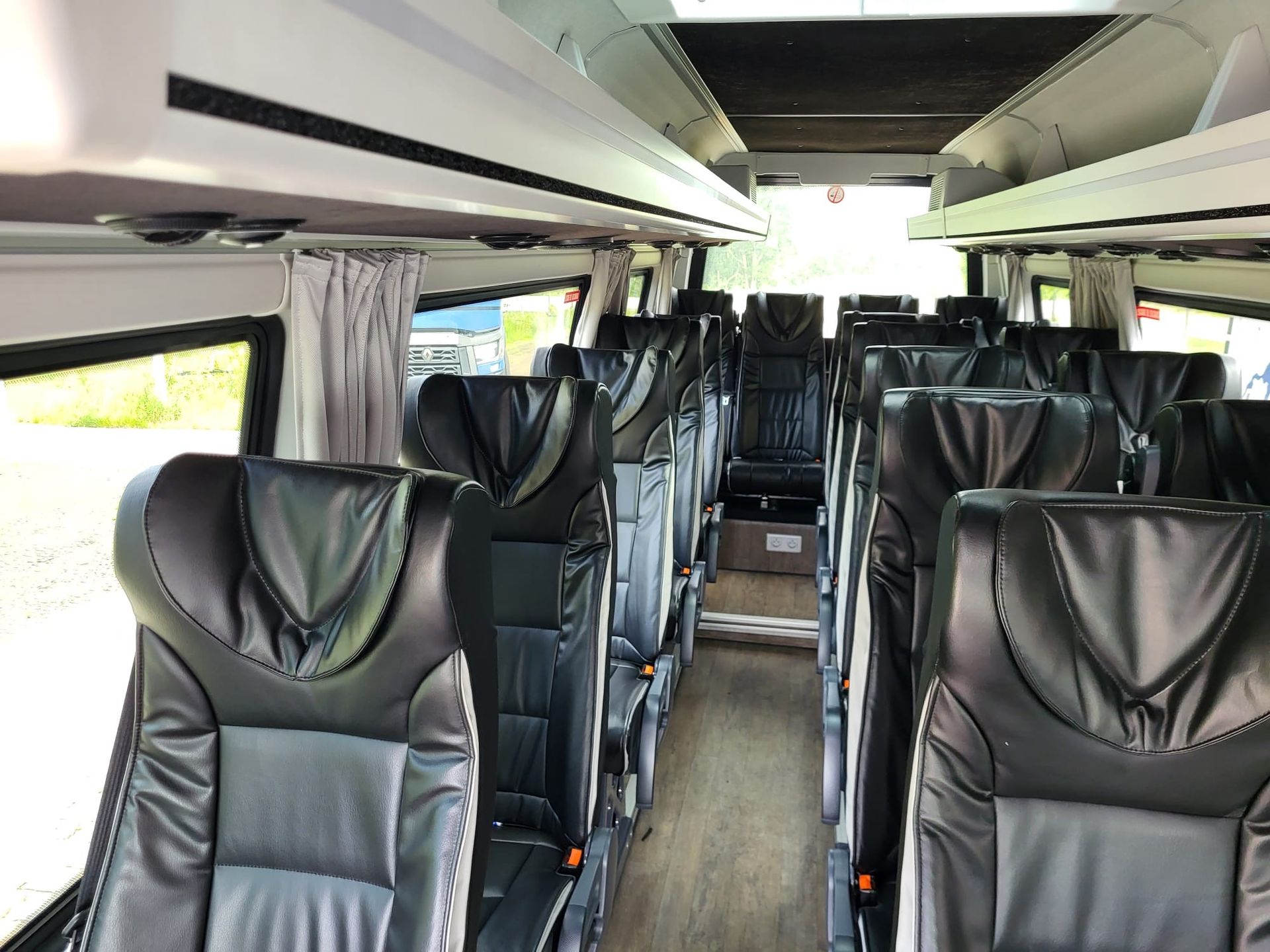 Een uitzonderlijk voertuig verdient een uitzonderlijke carrosserie. Voor de vervaardiging van ons voertuig vertrouwden wij op de zeer gerenommeerde carrosseriebouwer MUSSA & GRAZIANO. Hij is uitgerust met stoelen van natuurlijk leer, met verstelbare rugleuningen en zijdelingse offset. Verstelbare hoofdsteun. Individuele tablets en e-readers. Pneumatische vering voor meer comfort. USB-oplader. Ook uitgerust met een koelkast.